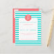 A bright turquoise and Coral Striped,Modern Save the Date Postcard. All my invitations are available with several matching accessories. This save the date card can also be used for a general party invitation or converted into an entire invitation suite with several matching accessories. If you have any questions or special requests for your invitations, let me know how at theroyaldesignstudio@yahoo.com Thank you for browsing!