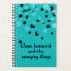 Students turquoise daily planner with graphic black and aqua dots, along the top half. Black custom text reads Classes, homework and other annoying things, and can be personalized to read what you want. Great for high school and college.