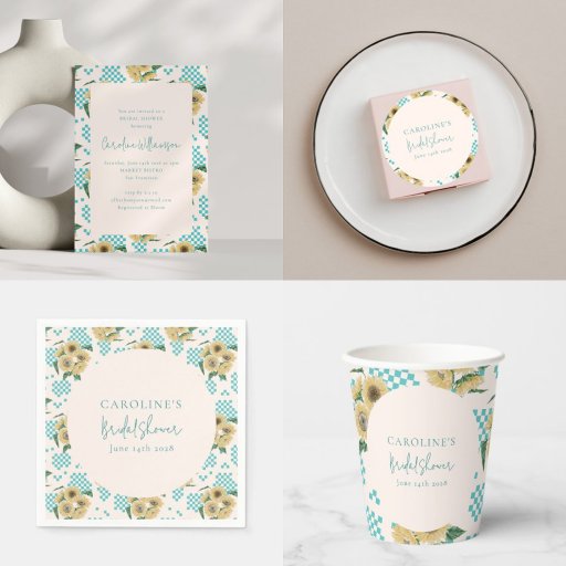 Turquoise Sunflower Chequerboard Bridal Shower Invitation