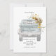 Redneck Wedding Invitation. Cowboy Boots and hat. String of Lights. Sunflowers. Light Turquoise background. Vintage Truck.
