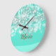 Turquoise teal agate aqua monogram add letter text large clock