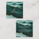 Turquoise Teal Agate Gold Glitter Script Monogram Square Business Card