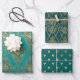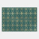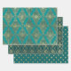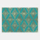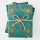 Vintage Paris teal (turquoise) and gold pattern wrapping paper in three different styles.