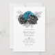 Turquoise - Teal Black and Silver Floral Wedding Invitation