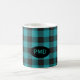 Turquoise Teal Blue Black Buffalo Plaid Monogram Coffee Mug