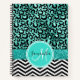 Turquoise Teal Faux Glitter Leopard Print Monogram Notebook