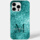 Turquoise Teal Glitter Sparkle Custom Monogram Case-Mate iPhone Case