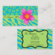Ceate a stylish business card for a great impression. Colourful stripe zebra skin and cheetah or leopard skin graphic design is one of the hottest art and design trends, and is extremely popular from fashion to home decor. This sophisticated turquoise teal green and lime green with fuchsia pink zebra and cheetah print collection is designed for style. A lime green bar with a fuchsia pink flower creates a personalization area on the front and a lime green emblem on the back gives an area for all your contact information. This is fully customizable to personalize to include your name, monogram initials, business name or other words for your contact information for your business or for a personal calling card.