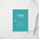 Elegant turquoise/teal and white wedding RSVP card formatted vertically.