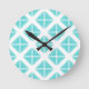 Turquoise Trendy Triangle Pattern Round Clock