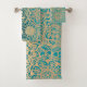 Un ensemble de serviettes avec un beau design boho chic turquoise vert et or mandala motif. Ajoute une belle idée à votre salle de bain ou cadeau pour quelqu'un qui aime les modèles boho mandala et vert turquoise.