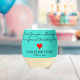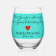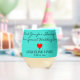 Turquoise Wedding Favours Monogram Red Heart Stemless Wine Glass