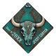 Turquoise Western Country Bull Skull Personalized Graduation Cap Topper