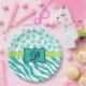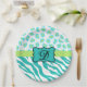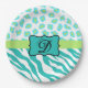 Turquoise White Green Zebra Leopard Skin Monogram Paper Plate