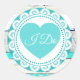 Turquoise White Lacey I Do WeddingStickers Classic Round Sticker
