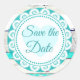 Teal, turquoise, white weathered distressed wood rustic style wedding Save the Date stickers.