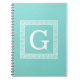 Turquoise Wht Greek Key Frame #1 Initial Monogram Notebook