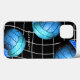 Women's volleyball iPhone tough case features three volleyballs in varying shades of blue/turquoise that have a chic abstract swirled texture look overlying a volleyball net graphic on a customizable black background - personalize with her name - by katz_d_zynes | also available for other devices including other iPhone models, iPad and Samsung ... for other devices, select your device type from the “Style Options” section on this page … for customization assistance, simply click the “Ask this Designer” link below