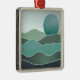 This fantasy landscape is in beautiful textured layers and shades of turquoise and aqua with a sun and hills and mountains.