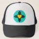 Native American Zia sun symbol with yellow heart in the centre of turquoise.