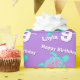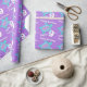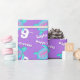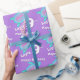 Birthday wrapping paper in bright purple with a swimming whimsical sea turtle design. Personalize this turtle art birthday paper with your child's name and age. Currently reads Happy Birthday Layla 9 today. Ideal for young turtle or sea creatures or wildlife fans. Design and cute heart shell turtle painted in watercolor by Sarah Trett.