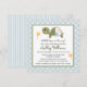 A sweet turtle wears a pair of diapers with a yellow heart on it held by a blue diaper pin. These invites make cute baby shower invitations for the mom patiently waiting for the arrival of her new baby boy. Orange and white daisy border on a soothing pastel blue background. Artwork © Chrissy H. Studios, LLC. All Rights Reserved.