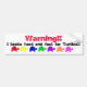"Warning!! I brake hard and fast for turtles!!" This is a great bumper sticker for turtle lovers. Especially if you like to stop for turtles. White background with a row of colourful turtle siouettes at the bottom. The words " Warning! I brake hard and fast for turtles!!" above the turtles.