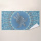 Tortue de mer en argent dans un mandala sur un arrière - plan bleu. Décor de plage élégant.