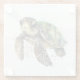 A glass coaster featuring a swimming turtle in watercolor illustration style.
