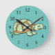 A color pencil sketch of a happy turtle adorns this fun clock!