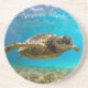 This sandstone coaster is shown with a photo print of a turtle in the sea.