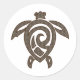 Stylish graphic turtle. Put the sticker on my water bottle. Recently took trip to Galapagos Islands where I knew we would see sea turtles. We snorkeled along side of them. I liked having my water bottle "show off" what we were swimming with every day. The sticker design is more sophisticated than a typical childish design. The final product looks exactly like the sample. The color is a "washed out" chocolate brown. Looks cool without trying to look cool.