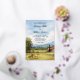 This wedding theme features a hand-painted watercolor countryside scene with sunlit fields, hills and horses. Perfect for destination weddings and vineyard celebrations. A portrait of European countryside landscape. This invitation can be easily edited with your wedding details.