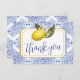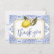 Thank You Note Cards featuring watercolor lemons complemented by a classic blue/white Tuscan tile pattern with modern & free-hand-lettered typography font. Personalize with your own wording/details! For further customization, please click the "Customize it" button and use our design tools to modify this template. Not all artwork and text can be modified.