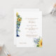 Beautiful Sunflower Tuscan floral Wedding Invitation. Mediterranean back. Bride's Parents, Gold text.