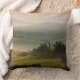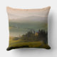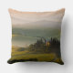 Photo throw pillow cushion with the famous Podere il Belvedere house surrounded by hills and cypress trees at sunrise on a foggy morning in a landscape in Orcia valley in Tuscany, Italy.