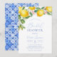 Tuscany Lemons Blue Tile Pattern Bridal Shower Invitation