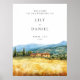 This elegant welcome sign featuring a rustic country Tuscany scene, can be personalized with your information in modern typography. Designed by Thisisnotme©