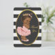 Personalized custom ethnic princess ballerina baby shower flat thank you cards for girls' showers. A beautiful, modern card with contemporary black and white stripes background and elegant black and faux gold foil oval shape with a cute adorable African American Princess baby ballerina in a pink tutu and ballet shoes. Fancy gold cursive font. Classy, chic, feminine, girly, ornate, double sided thank yous for baby showers. All text is fully customizable / personalizable to suit your needs - lots of fonts & colours to choose from. These sophisticated, unique and original personalised, custom invitations are printed on both sides / have double sided printing. If you need any assistance customizing your product please contact me through my store and I will be happy to help. PLEASE NOTE: All elements are flat printed graphics - not real gold foil.