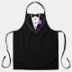 Elegant, and a little bit funny, black and white tuxedo apron with a purple flower in the lapel for the guy, or girl who loves to look extra when cooking, baking and/or grilling. Fun novelty Father's Day gift for dad, or father figure In your life who always man's the grill at the family barbecue. Also could be a cute bridal shower gift for the groom that cooks. Make it a couple's gift with our matching bridal gown apron. Why not personalized wedding tuxedo aprons for grooms and ushers?