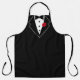 Tuxedo Black and White with Red Flower in Lapel Apron