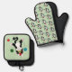 Tuxedo Black White Christmas Cat Oven Mitt & Pot Holder Set