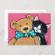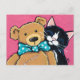 Tuxedo Cat and Teddy Bear with Bow Tie Postcard