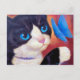 Tuxedo Cat Chasing Butterfly Painting Postcard