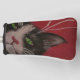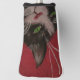 cute black and white tuxedo cat with bright green eyes sits on a deep rich red background in this painting made wine label. Because what goes better than cats and wine.