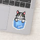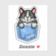 This fun novelty sticker includes a faux (printed) denim / blue jean look and includes a cartoon black and white tuxedo kitty cat that appears as if it's sitting inside a pocket! Use the easy template to add your name or your cat's name to the design (or simply delete the sample name "Tabitha" to order without a name). These cute stickers make the perfect gift for any cat owner! They would also be fun for an animal groomer or vet.