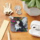 Tuxedo Cat Maroon Dark Pink Cats and Flowers Keychain