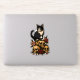 Elegant, eerie, and strangely romantic — this tuxedo cat perches proudly atop a pile of aged skulls entwined with roses. A striking design for lovers of gothic beauty, cats with attitude, and darkly enchanting Halloween art.