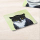 Tuxedo Cat Painting - Cute Original Cat Art Square Paper Coaster