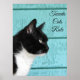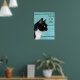 Black and White Tuxedo Kitten, my cat, against Teal blue background